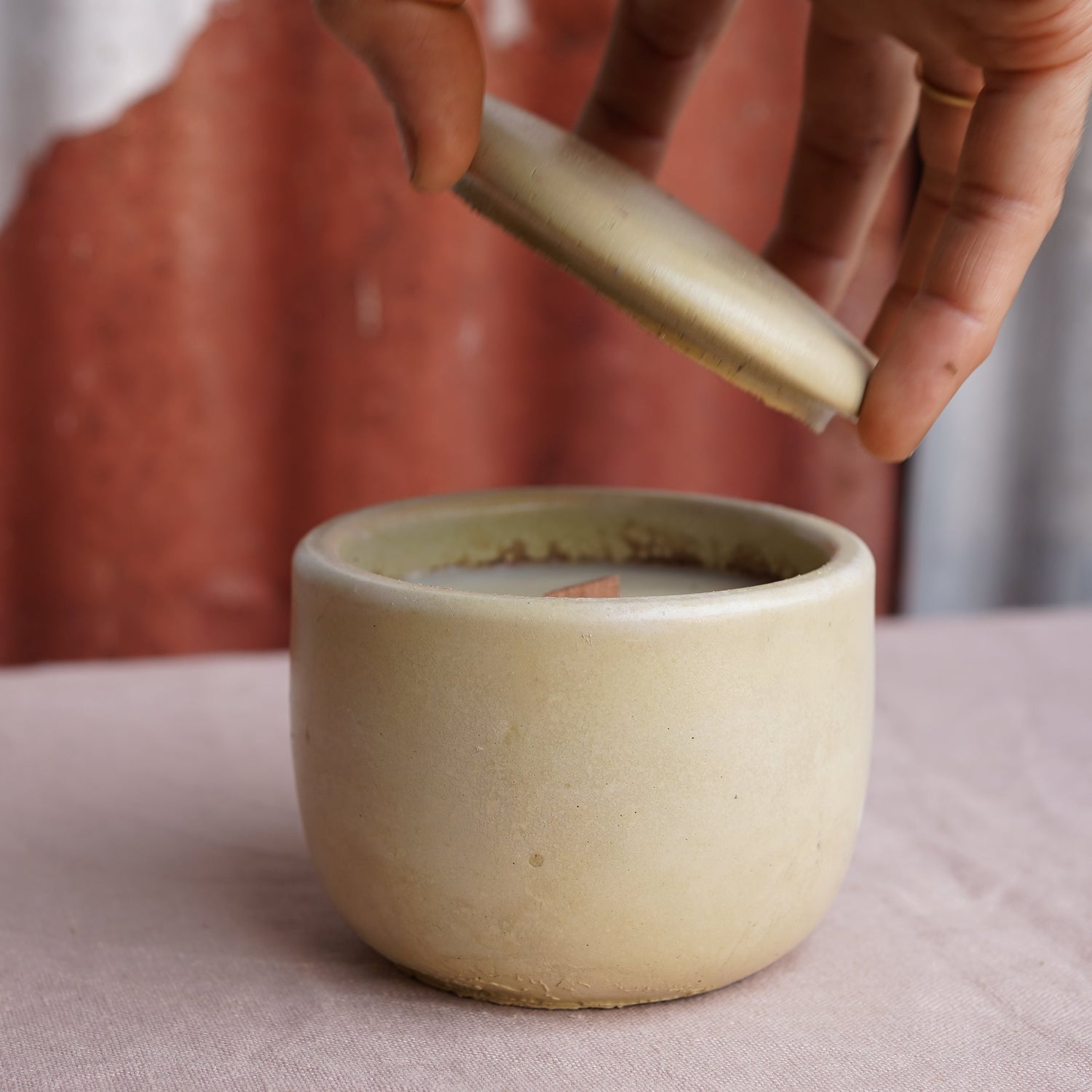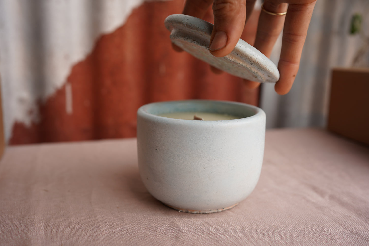 We specialize in crafting unique concrete pots that are one-of-a-kind. Each candle requires 3 days to complete. Every pot is meticulously scrubbed and sealed for durability. After drying, we combine oils and coconut soy wax for hand pouring into our custom pots.